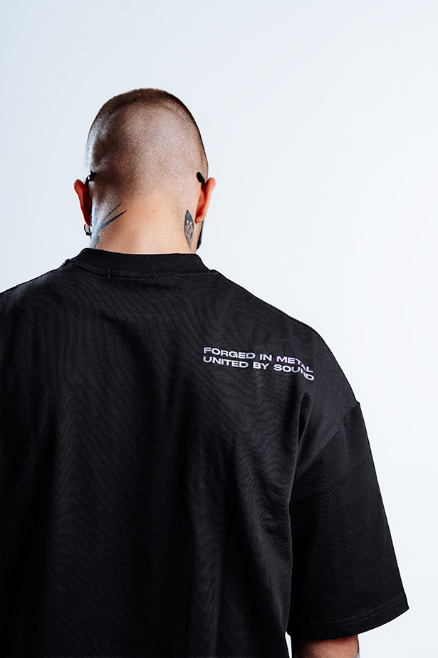 Where sound meets steel .This oversized black t-shirt embodies the raw essence of the metal element through bold SIXTH ELEMENT branding and powerful minimalist identity.Crafted from premium heavyweight cotton,it merges industrial strength with refined streetwear design – created for those who move with presence , resilience, and purpose.